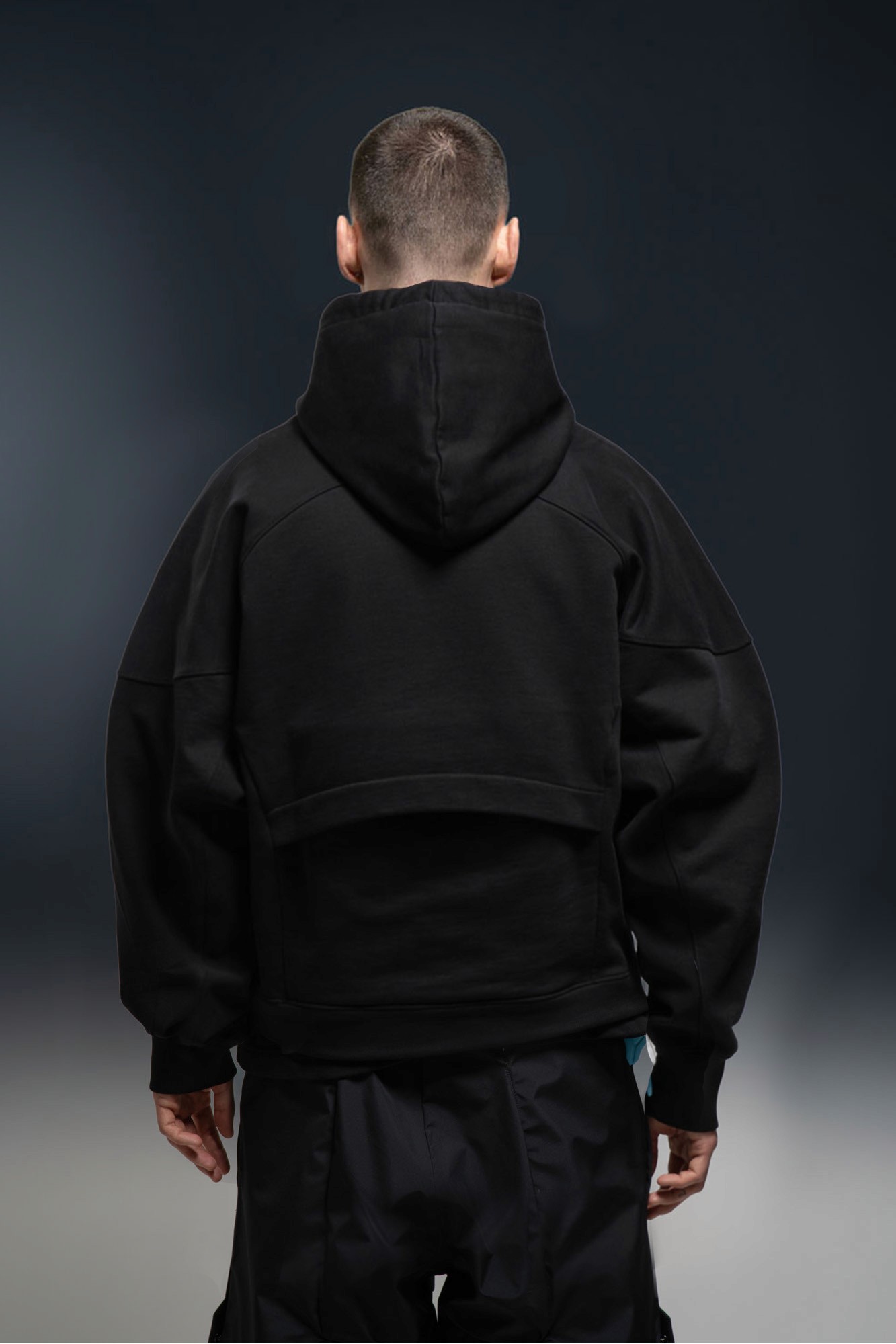Die versteckte Kangaroopocket mit Reißverschluss und innerer Trennnaht hält Essentials organisiert. Schlüssel und Smartphone bleiben sauber getrennt. Für Klarheit unterwegs.